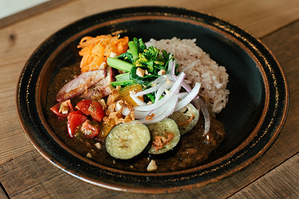 飛騨高山からの出店。今回は冬野菜のカレー。たっぷりの玉ねぎとホールごとスパイス、飛騨産りんごを使用したルーに、素揚げした蕪や南瓜などの旬の野菜をたっぷりのせて。冬の野菜の食感や旨みを、スパイスと甘さのバランスのとれたルーとともにお楽しみください。