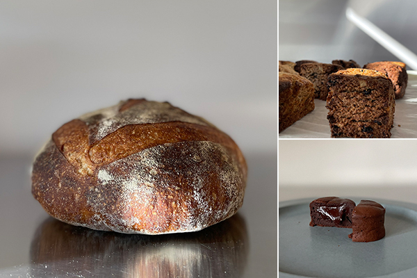 有機ライ麦サワー種をメインに自然栽培米麹、有機レーズンの発酵種のパンやマフィンとスコーン、米粉使用のフォンダンショコラをお持ちします。