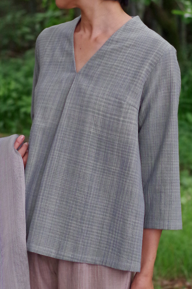 Makiのカディは、北インドの平原、工房から車で4時間ほどのところで織られています。主に近辺の綿花から紡がれ、手織されます。サラッとした柔らかさが魅力です。春から秋口まで長く楽しめます。