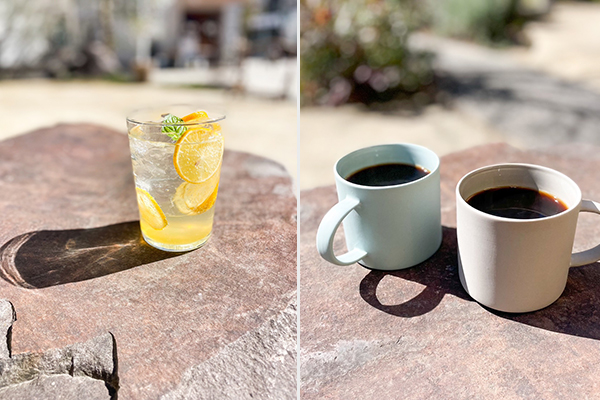 おなじみ姉妹の珈琲店。水出し珈琲と季節のジュース。ハンドドリップコーヒーはオススメのお豆3種類をお持ちします。
