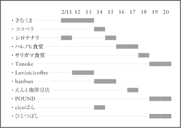 最終日まで、 lunchやcafeの顔ぶれも多彩!!
