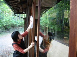 い。| 10月24、25、26日の三日間、竹の家にて「オープンハウス・竹林の秋」が開かれる。 お陰様で、まずまずの天気。 上写真は、本日午前の模様である。 秋空をバックに、家の前に茂るケヤキの木々。 風の吹くたびに、黄色くなった枯葉を散らし、秋らしい風情を醸してた。 冬前にはこの葉が全部落ちてしまうわけだから、掃除もたいへんだ。 じつは、イベントの初日、庭の片隅に寄せ集めておいた昨年の落ち葉の山に、コムラサキシメジをいくつも発見!(中写真) 私は狂喜乱舞したのであるが、他のみんなはけっこう冷静、というか冷淡。 そこで私はひとり淋しく、イベントの合間に味噌汁に入れたりして食したのである。 なかなか美味であった。 (私の生存を危ぶむ向きもあったが、もちろん今でも生きている) さて、一年ぶりのオープンハウスだったせいか、例年より多数の来訪を頂く。 二百個ほど用意した竹コップも、三日目の午後にはなくなってしまった。 Silko (しるこ)もなかなかの人気で、連日、三時頃には売り切れる。 下写真、手前、長火鉢の上で餅を焼く船附クン。 藍の父であるこの船附クン、じつは昨年、皆に惜しまれつつ、隣町・日の出から、静岡・浜松へと転居したのである。 しかし「竹の家」イベントと聞くと、じっとしてはいられない。 このたびは妻子をクニに残し、よっぴいてクルマで駆けつけ、参加したのであった。 その奥にいる群像は、藍の葉をちぎる人々。 信州上田で育てた藍草を乾燥し、その葉をちぎって集めているのである。 左端の白い人物は、千葉から来た寧々ちゃん。(八歳) お母さんが展示を見ている間、感心にもこうしてウチの手伝いをしてくれている。 (おまけに私にアメ玉もくれた) かくしてちぎった藍葉で、いつかスクモを作ろうと企んでいる。 折も良く、来訪客の中に、簡便なスクモの作り方を知っている人がいた。 今度、出かけて習ってこようと算段している。 というわけで、みなさんの愛に支えられつつあゆむ、MAKI TEXTILE STUDIO であった。 (ちなみに、三日前掲載↑の太田綾が準備していた糸束は、「ひとつ300円、ひとり二束まで」としたが、一日目で完売だったそう) |