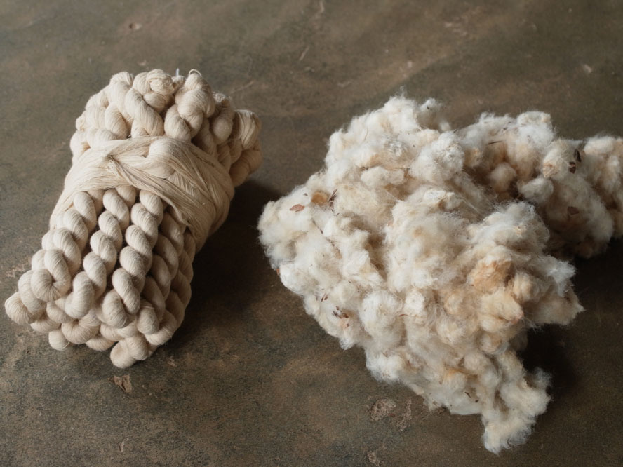 原料である綿花はパナサと呼ばれる繊維長の短い品種だ。通常、繊維長が短いと細い糸を紡ぐのは難しい。にもかかわらず100カウントという極細糸を紡ぐというのは驚きである。
