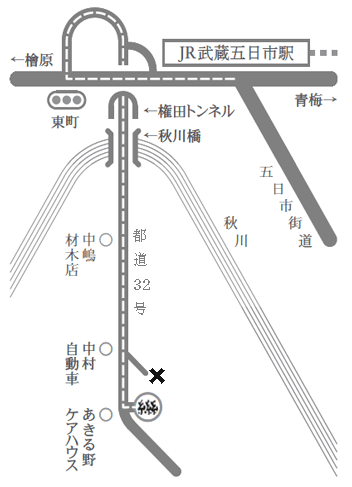 こちらの地図を参考に、がんばってJR五日市線・武蔵五日市駅前まで来る。 |